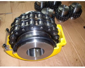 滾子鏈聯軸器,就是通過公用的滾子鏈把兩個半聯軸器,用鏈輪嚙合的方式連接而成的聯軸器,常用的滾子鏈聯軸器有:GL型滾子鏈聯軸器,KC型鏈輪(鏈條)聯軸器,尼龍鏈聯軸器,齒形鏈聯軸器等等。滾子鏈聯軸器的外觀的區別就是外面有無罩殼,有罩殼的就是為了為了美觀的同時,還能起到的保護工作人員安 全的作用,罩殼是在鏈條意外崩開的時候,能起到的緩沖作用,從而減少傷害。