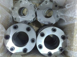 正確安裝膜片聯軸器螺 栓方法:把螺栓從法蘭盤小孔外側穿入,再穿入膜片孔中(注意膜片的方向,膜片是由許多單個薄片由鉚釘和鉚釘墊圈,鉚釘墊圈處應與緩沖套相接觸,否則會影響 鉚釘組的使用壽命),再從另件法蘭盤大孔外側穿入套上緩沖套,彈性墊圈,擰上螺母緊固時要注意使螺栓不要轉動,安裝螺栓時   要注意螺栓方向,不要隨意安 裝螺栓方向,否則會造成膜片扭曲,長期運轉會使膜片和螺栓配合段表面、半軸節小孔處的損壞。因為螺栓與法蘭盤配合段表面是傳遞轉矩非常重要的配合段,表面 完好性直接影響使用性能。
