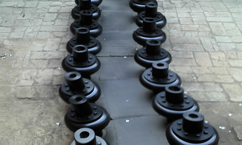 3:橡膠元件(輪胎體)與金屬壓板硫化粘結(jié)在一起,裝配時(shí)用螺栓直接與兩半聯(lián)軸器聯(lián)結(jié)