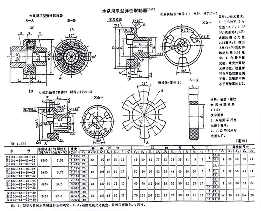 泵用爪型聯(lián)軸器的基本參數(shù):